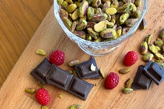 Dark chocolate, crunchy pistachios, and juicy raspberries in a no-fuss bar that looks straight out of a fancy chocolatier.